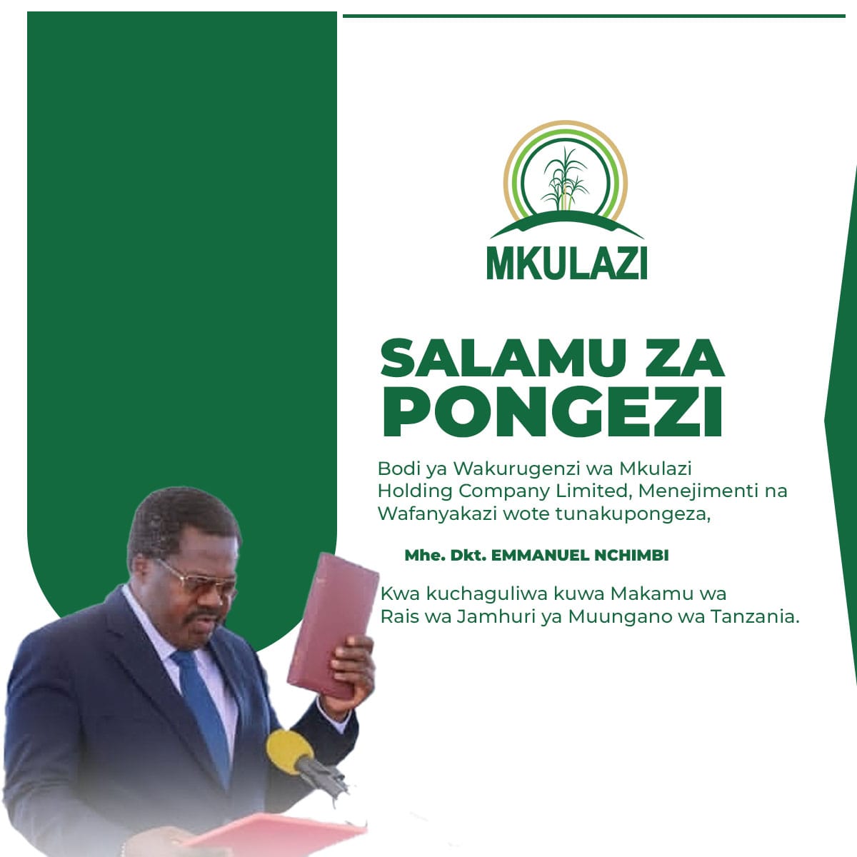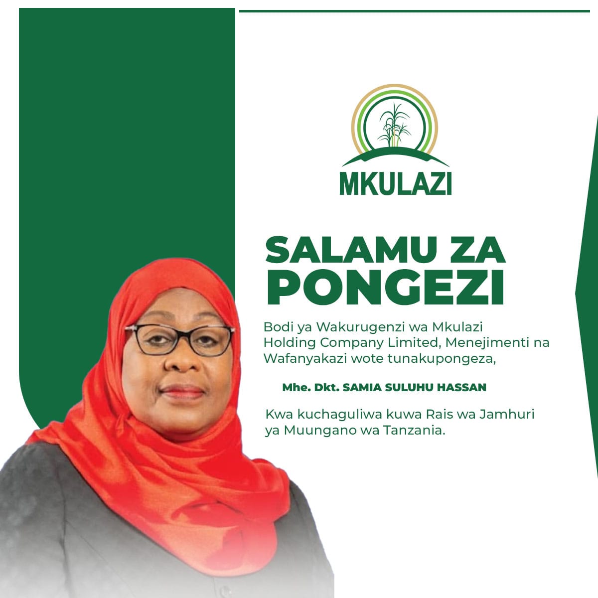 HONGERA MHE. DKT. SAMIA SULUHU HASSAN KWA KUCHAGULIWA KUWA RAISI WA JAMUHURI YA MUUNGANO WA TANZANIA